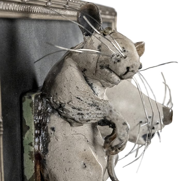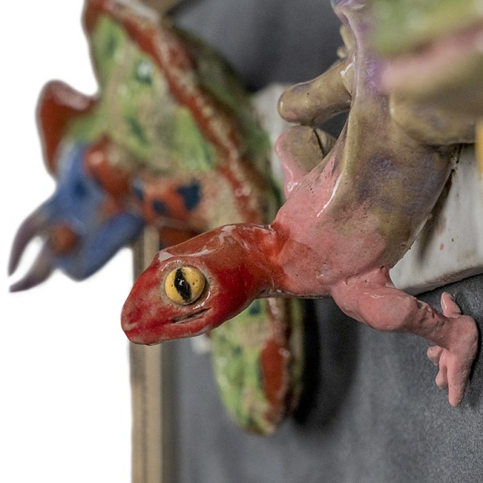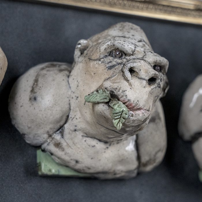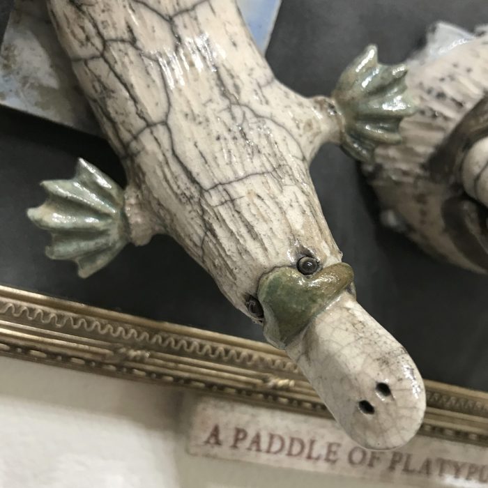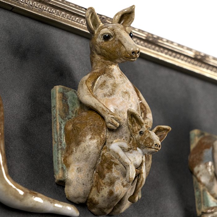 I ended up sculpting 81 pieces that were grouped in sets of three to make 27 “Smithsonian-esque” framed works of art. Initially this project’s main focus was on clever word and art combinations, but it became an environmental love story for all the animals on this planet.
